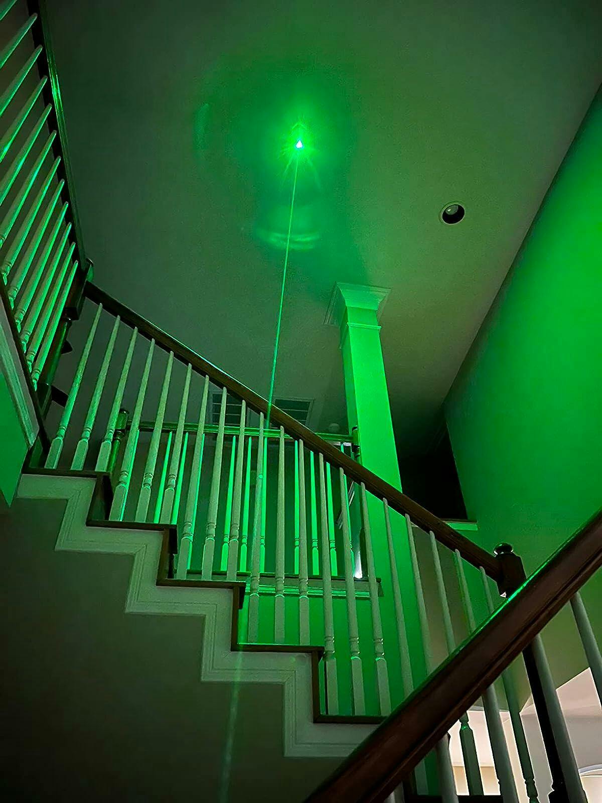 💫[Green Laser Pointer]: Rotate to take star cap off, experience the long range laser beam. You can see the green laser beam trajectory is clearly whether it is day or night , this high-power green laser beam can reach 6,000 feet at night.